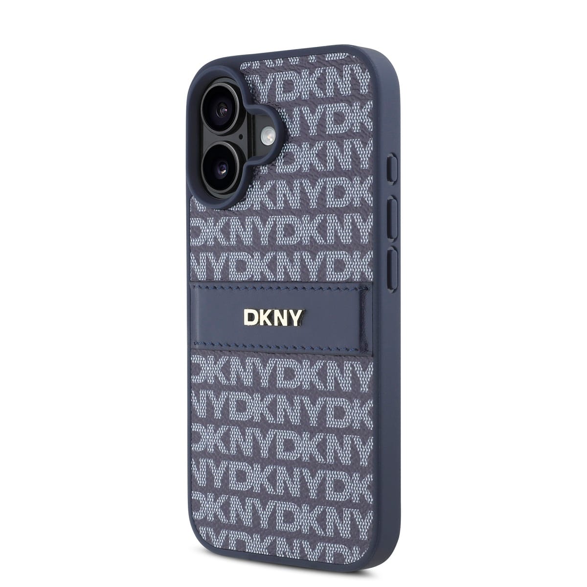 Design krytu telefonu má elegantní, moderní estetiku s opakujícím se vzorem loga „DKNY“ po celé zadní straně a výrazným pruhem s nepřehlédnutelným ikonickým logem.