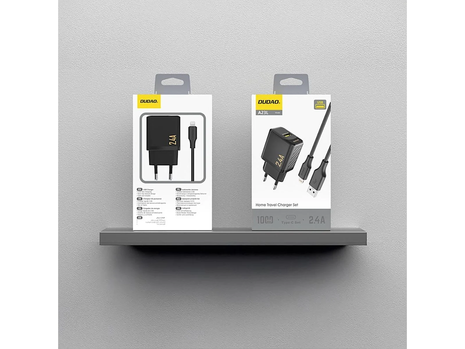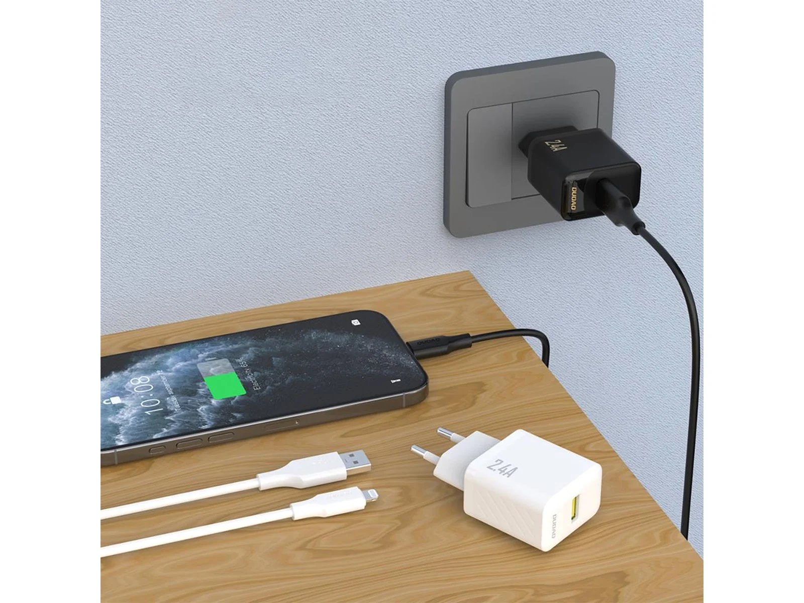 Dudao A23LEU 2.4A GaN EU USB-A wall charger with USB-A cable – Lightning – black