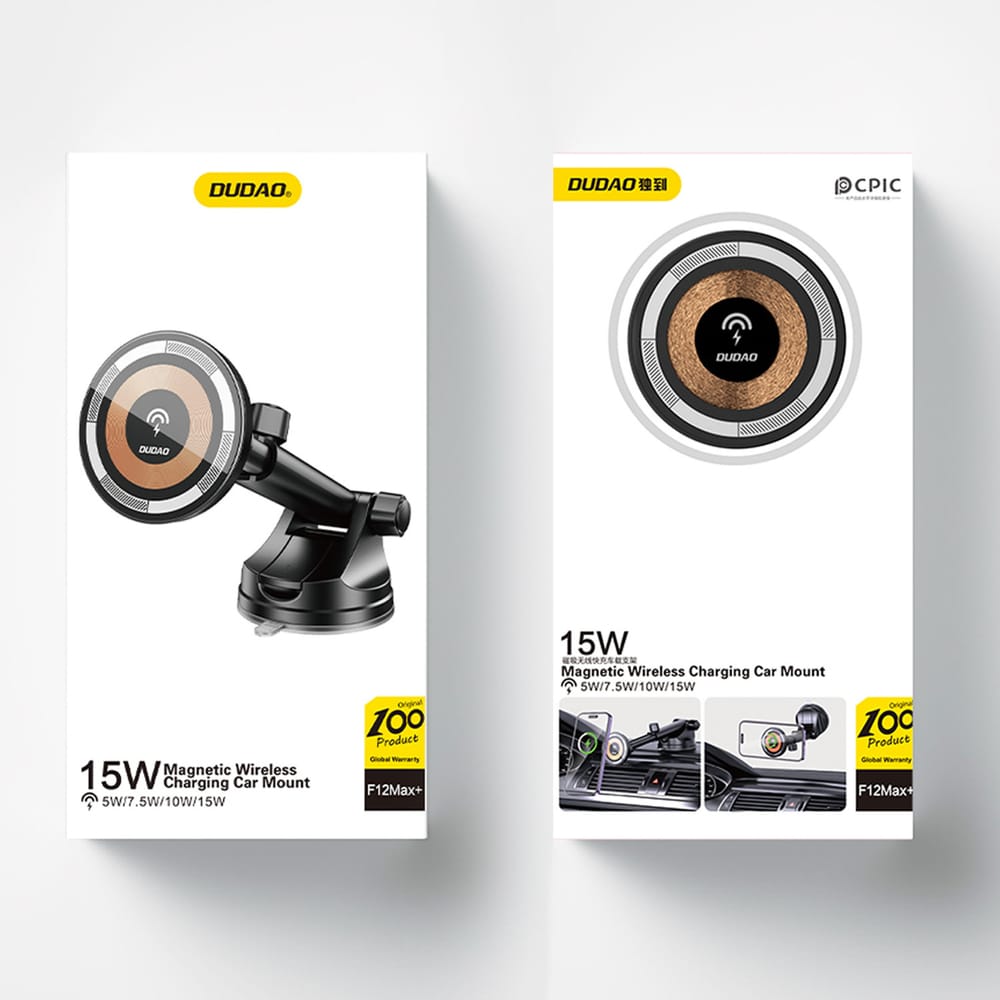 Dudao F12MAX+ Kfz-Halterung mit 15-W-Wireless-Ladegerät, kompatibel mit MagSafe – Schwarz