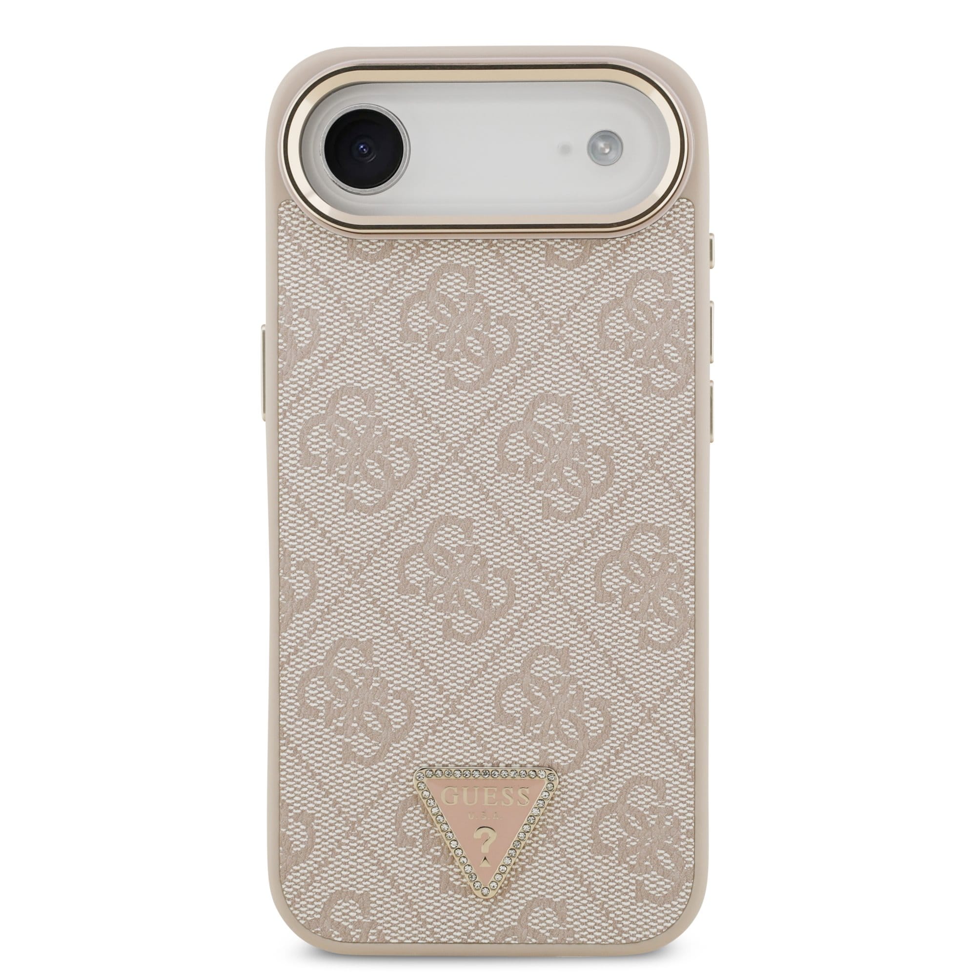 Guess PU Leather 4G Strass Triangle Logo Gold Frame MagSafe Case for iPhone Air Pink