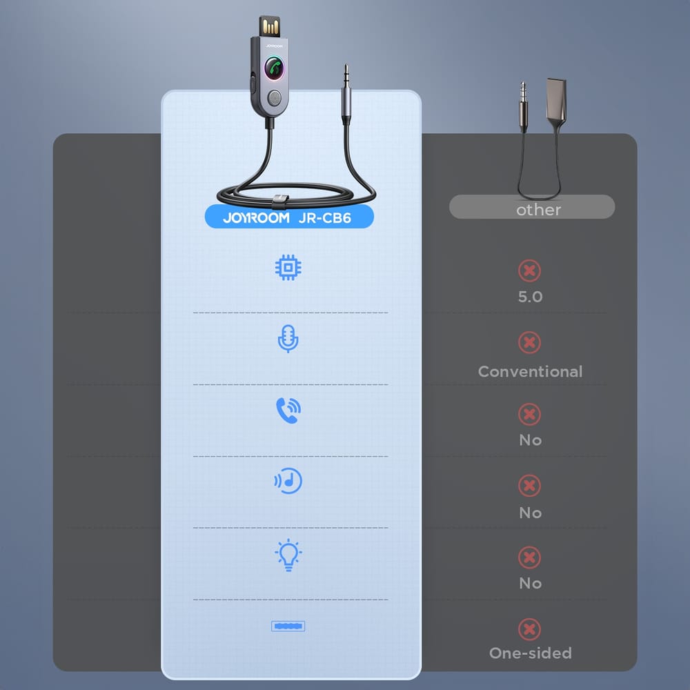 Verwandeln Sie Ihre herkömmlichen Geräte in ein modernes Entertainment-Center mit dem Autosender-Empfänger Joyroom JR-CB6 in elegantem Grau. Dieses funktionale Gadget erleichtert nicht nur das Reisen, sondern sorgt auch für ein modernes Musikerlebnis!