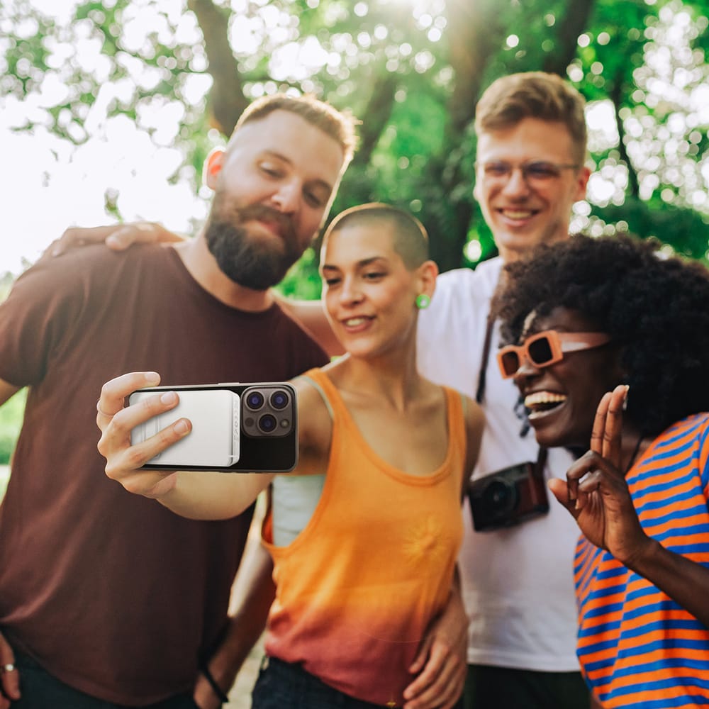 Durch das schlanke Design verdeckt die Powerbank nicht die Kamera des Telefons und passt problemlos in Ihre Tasche.