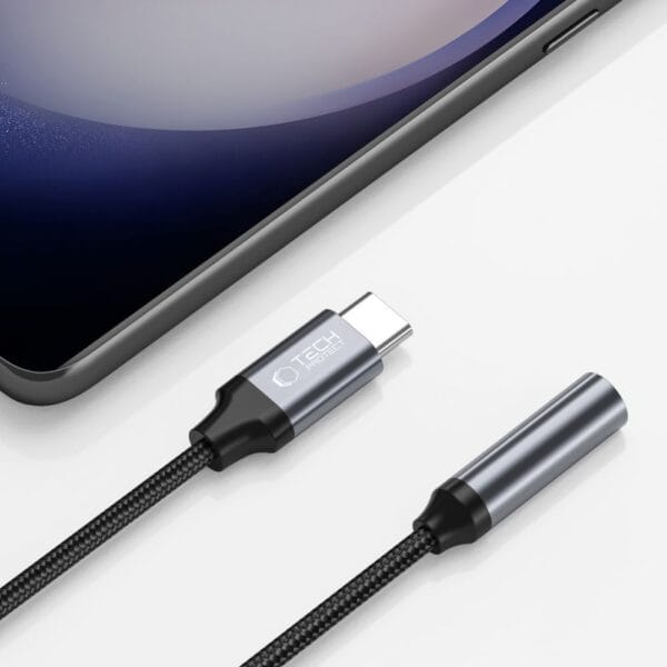 Der langlebige Tech-Protect UltraBoost-Adapter ist eine einfache Möglichkeit, Zubehör mit einer 3,5-mm-Minibuchse (z. B. Kopfhörer) an Geräte mit einem USB-Typ-C-Anschluss anzuschließen.