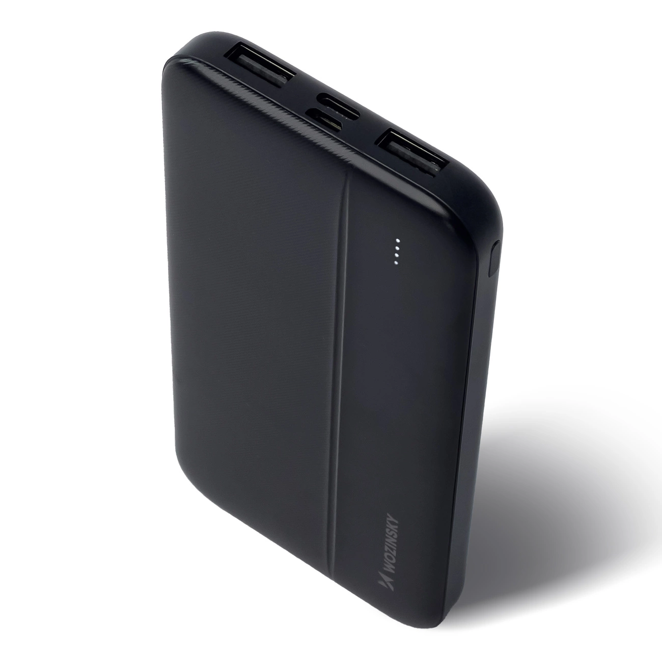 In der Wozinsky WBPPK1 Powerbank sind leistungsstarke LEDs verbaut. Dank ihnen wissen Sie jederzeit, wie hoch der Akkustand im Gerät ist. So müssen Sie sich keine Sorgen über einen plötzlichen Energiemangel machen . Der Ladezustand wird im Standby-Modus angezeigt – nach dem Drücken der Power-Taste. Die Wozinsky Powerbank können Sie bedenkenlos auf jede Reise mitnehmen. Apropos Reisen: Die Wozinsky WPBBK1 besticht durch ihre schlanke Form und ihr geringes Gewicht . Mit 215 Gramm können Sie das Gerät bequem in einer Handtasche, einem Rucksack oder einer Gürteltasche tragen.