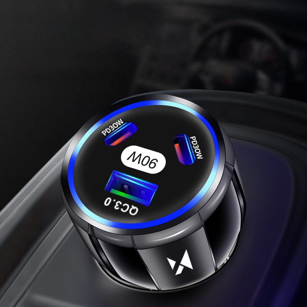 Wozinsky WCCCA Autoladegerät 2x USB-C 1x USB-A 90W PD QC – Schwarz